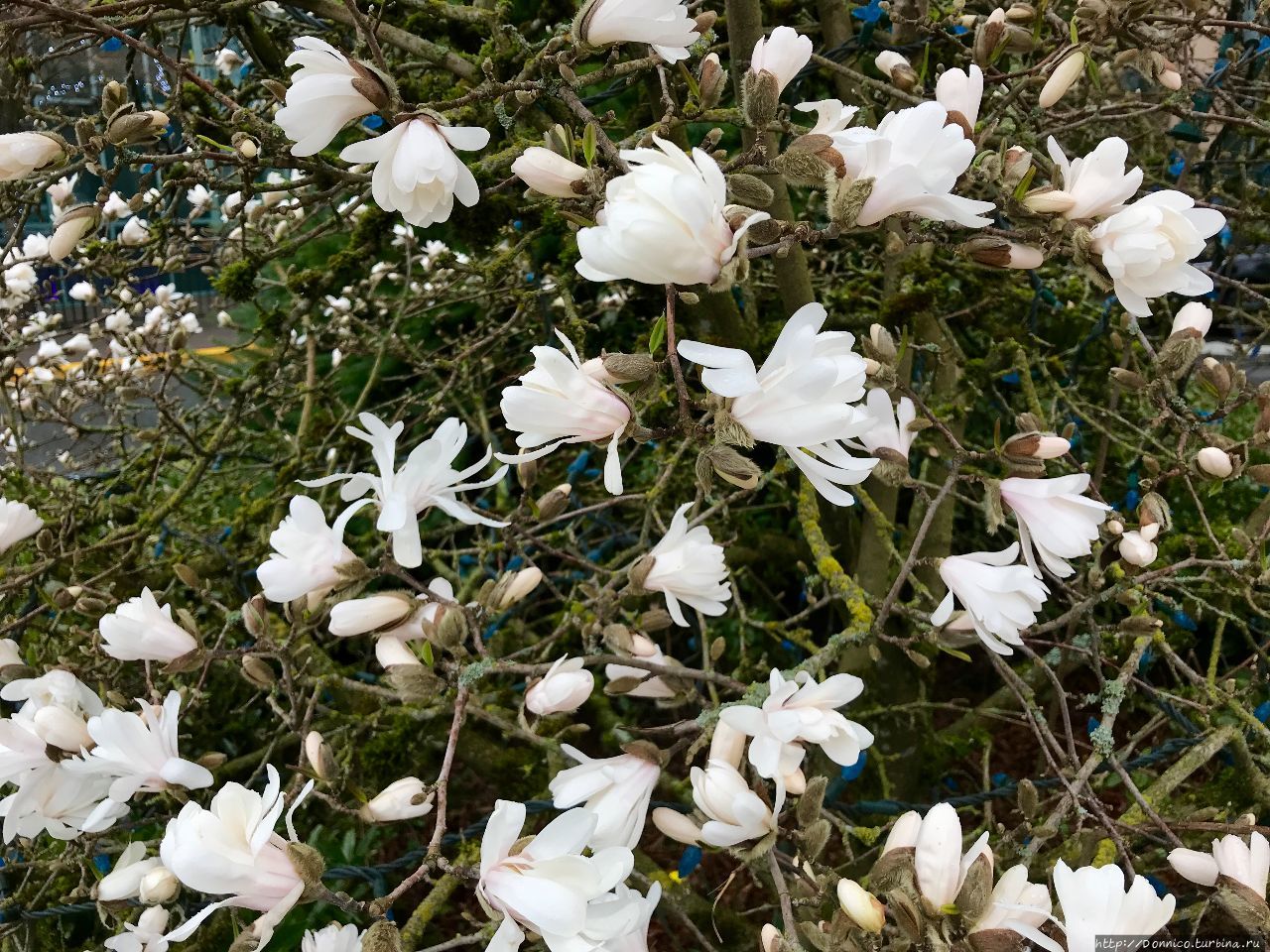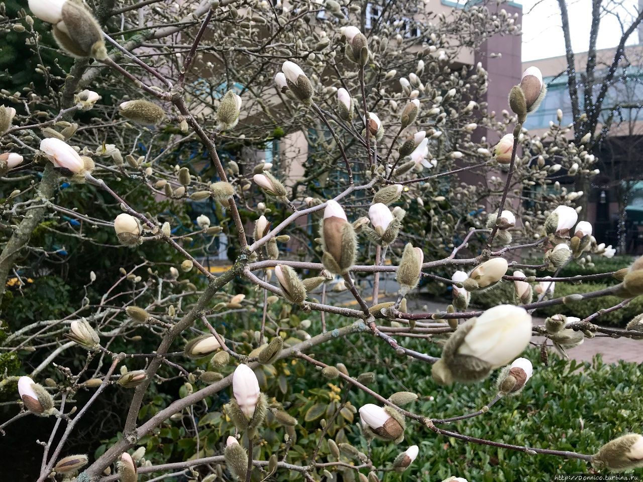 Весна пришла в Ванкувер буквально на нашей неделе, о чем можно судить по растущей перед отелем магнолии.