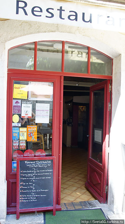 Со временем для приема пищи у французов все строго. Если не успеешь до 13,00 пообедать — все, заведения закрываются и до вечера тебя уже нигде не накормят. И вот идем мы в раздумьях по милому городку и видим ресторанчик.