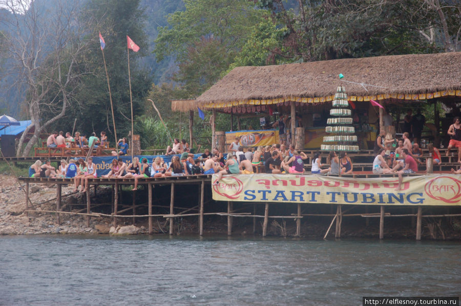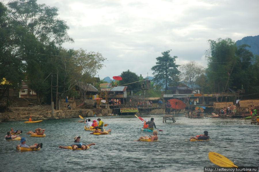 Второе место силы - это тьюбинг. Тебе выдают надутую камеру от грузовика, ты в нее садишься и плывешь по реке. На реке бары (special menu!), громкая музыка, тарзанки. Короче, разгульное веселье. В сухой сезон плыть на камере часа 2-3, после чего можно взять рикшу и повторить свое маленькое приключение.