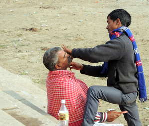 Днем, под лучами теплого январского солнца, желающих совершить омовение и искупаться в реке было еще больше чем ранним утром. Ведь некоторые индийские легенды гласят, что здесь — на дне Ганги — находятся 5 миллионов лингамов (основной и самой важной формы и образа Шивы), что делает и без того священные воды реки совсем уж святыми.