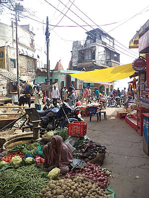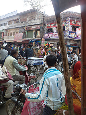 Узкая улочка выходит на главную, широкую и заполоненную рынком. Рикшам сюда въезд заказан, и без них хватает народу.