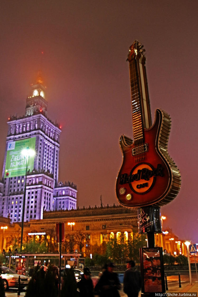 В Варшаве сперва несколько удивило расположение кафе. Я привык, что эта сеть выбирает самые "проходняковые" места в городе. Здесь же Hard Rock Cafe Warsaw расположилось как бы недалеко от всего — рядом вокзал, рядом ратуша, рядом деловой центр города (далеко от историчекого — Королевского Тракта и Старого города)