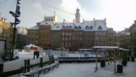 По узким улочкам мимо другиз достопримечательности вышел на рынок. Он также окружён реставрированными зданиями. Но всё-таки красиво, иначе здесь не ходили бы толпы туристов в такой мороз. Посередине рынка сделали каток, который как раз чистил трактор, а китайские туристы азартно делали селфи на фоне этого чуда техники.
