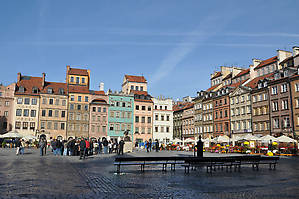 За те несколько часов между прибытием краковского экспресса в Варшаву и до отправления поезда «Полонез» (Варшава – Москва) мы обстоятельно побродили в историческом центре Варшавы — средневековом Старом городе (Старе Място). Этот уголок столицы, разрушенный во время войны, как и вся Варшава, был тщательно восстановлен поляками в первозданном виде. Прогулялись по старинной улице — Краковскому предместью, составляющей часть Королевского тракта. И, наконец, с удовольствием изучили панораму польской столицы с высоты смотровой площадки, открытой во Дворце Культуры и Науки.