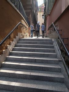 Интересно посмотреть на узкую улицу со ступеньками в направлении Рыночной площади — Kamienne Schodki.
