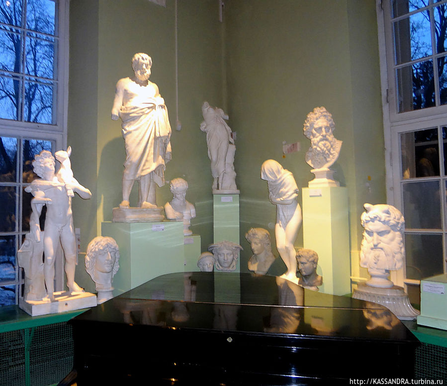 Здесь, среди зимнего сада, в изобилии установлены копии известных скульптурных композиций, бюстов замечательных людей.