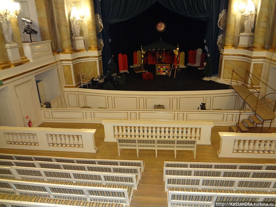 Старая оранжерея известна хорошо сохранившимся настоящим придворным театром.
