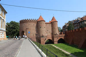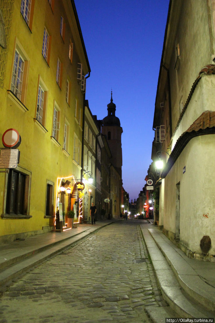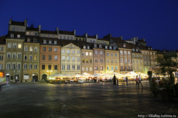 Ночь, конечно, ещё была не ночь, а всего лишь поздний вечер. Поскольку мы уже прониклись Варшавой, а время было самое активно-отдыхательное, то мы решили не тратить его на просиживание перед телевизором или в сети, а продолжить прогулку. И здесь мы не отличились оригинальностью, описывая круги примерно в районе Старого города, плюс-минус. Есть особая прелесть в пеших прогулках поздним вечером, когда общие расслабленность и благодушие буквально растворены в атмосфере, воздух тепел, а здания и улицы кажутся таинственными в мягком электрическом свете... Улочки были пустынны, а в многочисленных кафе и ресторанах не так много посетителей. Тут не могу не отметить, что в Варшаве (да и вообще в Польше) очень много заведений, интересных именно в интерьерном решении. И если даже с едой что-то будет не так (в чём я сомневаюсь, но допускаю), то эстетическое удовольствие получите точно. А мы добрались до старейшей площади города — Рыночной. За время своего существования стиль внешнего вида площади не раз менялся — готика, ренессанс, барокко, маньеризм... Во время войны она была основательно разрушена,а в 50-х годах восстановлена. Здесь находится несколько музеев, красивые здания, кафе, украшенные цветущими растениями, а в центре стоит один из самых известных монументов — Варшавская сирена (русалка), изображение которой можно увидеть на гербе польской столицы. Так что, пройти мимо одного из символов города ну никак нельзя! А нам стало интересно как это место выглядит при дневном свете, и мы решили прогуляться сюда с утра. Ну а пока дошли и до Варшавского барбакана, который именно в это время суток произвёл неизгладимое впечатление, хотя я к разного рода оборонительным сооружениям не испытываю особенной тяги. Барбакан по непосредственному предназначению использовался лишь раз — в 1656 году при нашествии шведов. В остальное время особого практического значения не имел, а в войну также был разрушен. Сейчас он практически полностью восстановлен и является одним из излюбленных туристических мест. Он удивительно удачно вписывается в окружающий пейзаж, а сам по себе расположен на стыке Старого и Нового города. Обязательно сходите сюда! Изображение барбакана часто можно увидеть на сувенирной продукции, работах художников, магнитах. Здесь много уличных музыкантов. А мне запомнилось большое количество людей разных возрастов, которые сидели на толстых стенах барбакана компаниями с нехитрой едой и напитками и общались, либо коннектились, уткнувшись в планшетники. Сказать по правде, у нас была задача — дойти до Парка фонтанов (сделаю здесь ссылку на показательный совет пользователя Lyubov