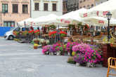 Утро выдалось тёплым и действительно туманно-седым. Поскольку то был день отъезда, то мы решили ещё раз быстренько пройтись по Старому городу, а заодно и позавтракать где-нибудь в открытом кафе. Завтрака в отеле мы не брали. Поскольку отель бронировала я, то мне показалось, что цена за него высоковата, а все согласились. Но чего мы не учли — того, что просыпаться будем по российскому времени, когда в Европе ещё никакие заведения не работают. Однако, прогуляться спозаранку было интересно, да и туристов — ранних пташек наблюдалось всего ничего. Вот тут уже мы подробно рассмотрели архитектуру, городскую скульптуру, буйную растительность, украшавшую улицы. И остались очень довольны увиденным! Зашли на боковые улочки и немного подсмотрели обычной жизни варшавян из центральной части города.