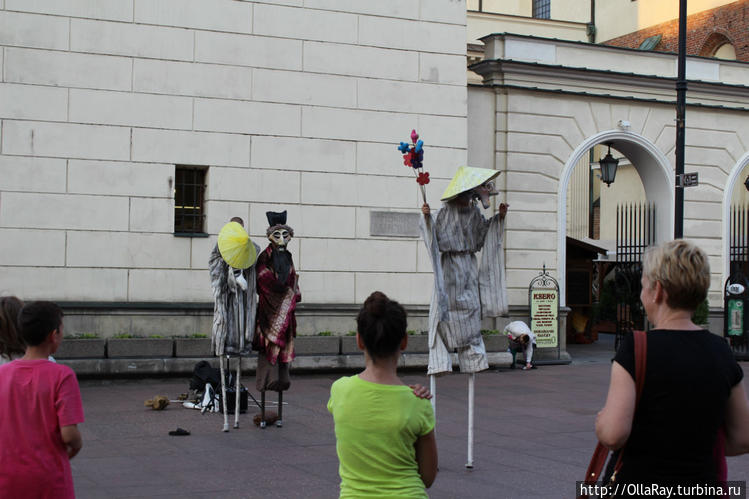 То ли очарование тёплого июльского вечера тому виной, то ли аура у места столь специфична, но находиться там было исключительно приятно! На Дворцовой царила какая-то радостная и расслабленная атмосфера, при изрядном количестве людей столпотворения не наблюдалось. То тут, то там доносились звуки музыки, не перекрывая друг друга при этом, многочисленные кафе и рестораны источали манящие ароматы, а на мостовой выступали уличные артисты. Не смотря на сумки, таки остановились и посмотрели спектакль "Волк и семеро козлят" в исполнении русской труппы. Порадовались, что именно тут было больше всего зрителей — "э литтл бит" национальной гордости:) Настроение вдруг стало лёгким и замечательным, и очень захотелось скорее идти гулять. Но нам нужно было заселяться, что мы и сделали. Подзаправившись в отеле сливовым и грушевым натуральным соком с мякотью (который очень рекомендую, да и вообще о польских продуктах можно много чего хорошего сказать, что я и сделаю чуть позже), мы решили оставшуюся часть вечера посвятить прогулке и немного осмотреться на местности, не заходя предметно никуда, хотя имели на руках внушительный список значимых точек. С этой мыслью за пару минут дошли до улицы Краковские предместья, где буквально сразу же увидели гостеприимно распахнутую дверь в колокольню костела св. Анны (подробности тут