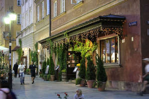 Кафедральный собор св. Михаила и Флориана). В это время храм был, понятно, закрыт, но вокруг прогуляться мы не отказали себе в удовольствии. Но далее решили возвращаться и не искушать судьбу, хотя чувства опасности от нахождения ночью в незнакомом городе не было, как ни странно. К тому же мы проголодались и сочли правильным завершить вечер хорошим ужином в красивом месте неподалёку от отеля. И вот тут впервые столкнулись с тем, что кухня во многих заведениях работает до 10-11 вечера, а потом ещё час-два вам только предложат напитки. Однако, Польша ещё не столь безнадёжна в этом отношении, как некоторые другие страны Европы, поэтому "едальню" мы всё-таки нашли и весьма даже неплохую. Для любителей подкрепиться после полуночи сообщаю координаты в совете