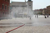 Благодаря променаду, есть захотелось сильно, а заведения открываться ещё и не думали. Мужская часть нашей компании решила вопрос быстро и просто, скомандовав построение в столовой комнате отеля, доплатив за завтрак на месте. Я же теперь рекомендую по возможности завтраки бронировать сразу, по крайней мере в Польше. Кстати, еда оказалась очень вкусной и сытной, а сама трапеза в красивой гостиной добавила некоторого лоска текущему дню. Параграф 4. А день так хорошо продолжался... А мы решили напоследок всё-таки дойти до Парка фонтанов. Тем временем к Королевскому дворцу уже подтянулись лошадки, на них можно прокатиться по центру. К полудню уже стало весьма жарко, по этому поводу на площади развернули шланг. Я заметила, что многие туристы пользовались водой, чтобы охладиться, а детей было за уши не оттянуть от бесплатного аттракциона. Мы прошлись вдоль стены барбакана. Вот как выглядит барбакан в миниатюре. На одном из домов заметила часы, мимо которых не пройти. Очень люблю уличные часы! Неподалёку обнаружился и памятник юному повстанцу. Он посвящен детям, участвовавшим в Варшавском восстании 1944 года. А внутри ворот художники продают свои творения, я не удержалась и приобрела картину с подсолнухами. Кстати, расплачиваться можно как в злотых, так и в евро, и даже в рублях:) А буквально рядом находится много сувенирных лавок. В Парк фонтанов мы всё-таки попали. Мне очень понравились дети, которые резвились в воде. Ну и я не отказала себе в удовольствии окунуть ноги в фонтан подобно местным жителям. Поскольку к вечеру мы должны были прибыть в Краков, то часть объектов оставили на следующий раз, но кое-что всё таки не могли обойти вниманием, правда, смотрели уже, что называется, в "темпе вальса". Одним глазком глянули на памятник Варшавскому восстанию. А после успели посетить ещё два места, без которых ну никак нельзя. Это Саксонский сад (пару слов о нём тут