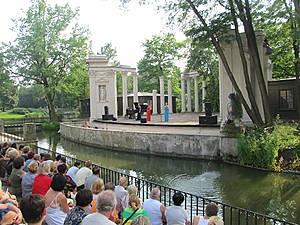 Аллеи Уяздовские — одна из самых роскошных улиц Варшавы, тянется от пл. Трех Крестов до ул. Бельведерская. Здесь находятся памятники архитектуры, дворцы, особняки, изящные жилые дома, посольства, здание Совета министров, а также красивые зеленые уголки — Уяздовский парк (Park Ujazdowski) и Королевские Лаженки (Łazienki Królewskie), парк с Бельведерским дворцом (Belweder). Вот этой улицей мы и двинулись в поход в Дворцово-парковый комплекс Королевские Лаженки. И ничуть об этом не пожалели.