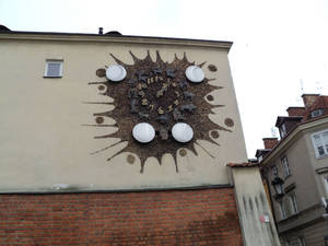 У самого входа на рыночную площадь находится небольшая улочка Зацепек. По ней мы и пошли. В прошлом здесь торговали птицами, в основном голубями и это нашло отражение и на домах. На одном из них барельеф с голубями. Потом мы по улице Цельна вышли к берегу Вислы. Открылся прекрасный вид на реку. Интересно, что раньше по этой улице целое столетие вывозили нечистоты из города, и тогда она называлась — Гнойна (Навозна).