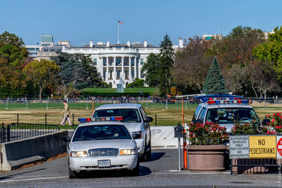 29. На подходе к самому главному особняку страны нас встречает очередной бюрократический высер под названием «меры безопасности» в виде криво поставленных уродливых ограждений, детище величайшего лохотрона современной американской истории под официальным названием «Сентябрь, 911».