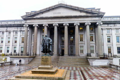 28. Нагулявшись в Балтиморе мы движемся дальше на юг, в столицу Соединенных Штатов — Вашингтон, округ Колумбия. Проходим мимо одного из многочисленных государственных учреждений, здания Министерства финансов.