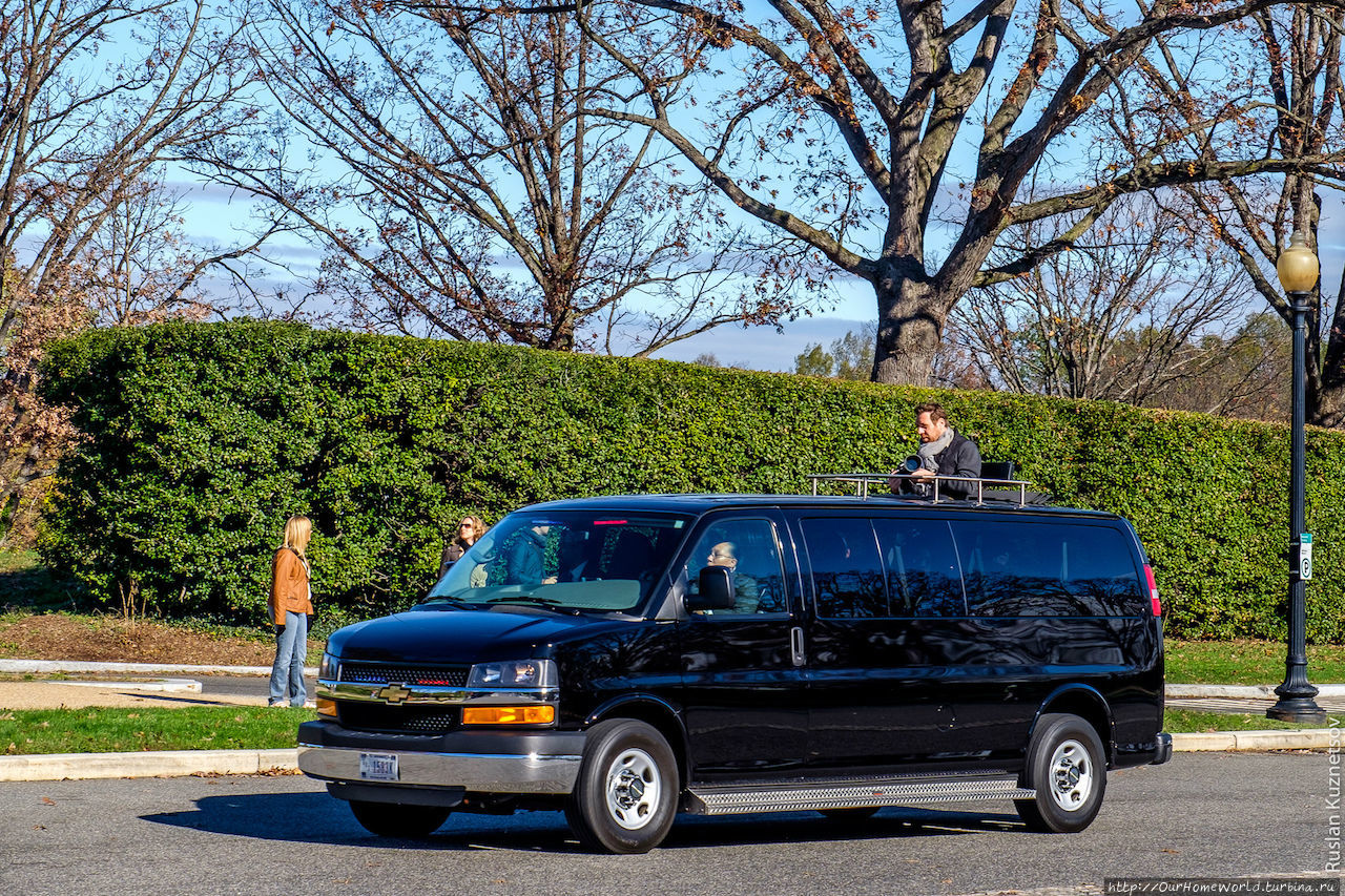 48. Сегодня День Ветеранов, на Арлингтонское кладбище должен прибыть президент и другие важные лица. Чтобы увидеть Обаму вживую нам нужно было приехать сюда заранее и пройти все кордоны безопасности. Я, как это часто бывает со мной с утра, протупил и вовремя приехать мы не успели. Еще на входе на кладбище встречаем кортеж президента. Кто-то пользуется моментом и успевает помитинговать на тротуаре, размахивая плакатами с надписями «Кровавый Обама!» и «Ты поедаешь детей!». Никому не приходит в голову это запрещать или отодвигать людей от обочины «в целях безопасности», где в трех метрах от протестующих проедет машина президента.