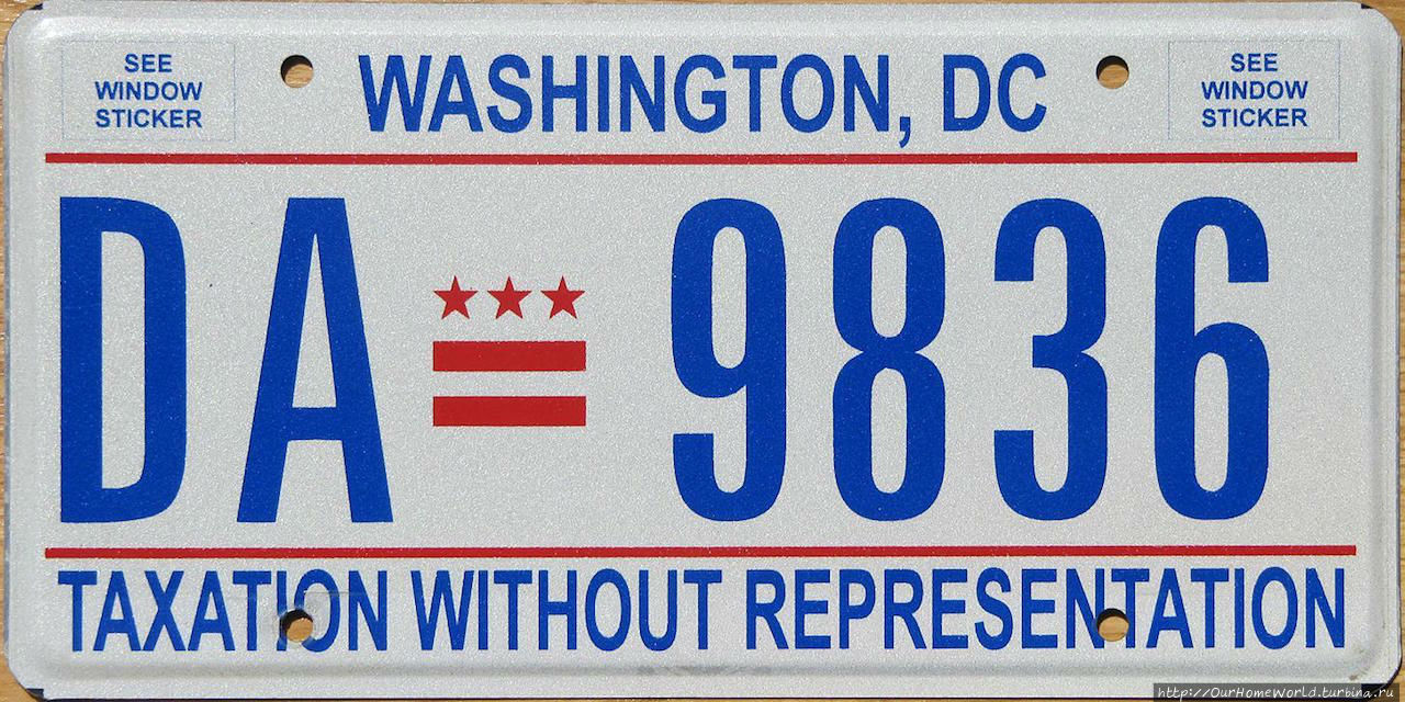 82. Интересная особенность: жители округа Вашингтон, который не входит ни в какой штат, не имеют своего голоса в Конгрессе, где заседают представители пятидесяти штатов. То есть, один представитель округа в Конгрессе имеется, в Нижней палате, но и он не имеет полноценного права голоса. При этом налоги народ платит. А ведь еще в восемнадцатом веке британские колонисты Америки озвучили лозунг «No taxation without representation» («Нет налогам без представительства») в адрес британской королевской власти, которой они платили налоги, сами ни на что в Англии не влияя. Этот лозунг широко использовался в Войне за независимость США и до сих пор считается вполне актуальным. Но, как видно, не в столице страны. Жители Вашингтона выражают свое мнение по поводу такой несправедливости тем, что поместили на автомобильные номера надпись «Платим налоги без представительства».