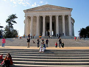внутри которого находится монументальный памятник в философском духеИли, не менее знаменитый монумент еще одному великому Президенту — Джефферсону, поражающий своими размерами и притягивающий своей гармонией