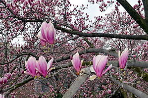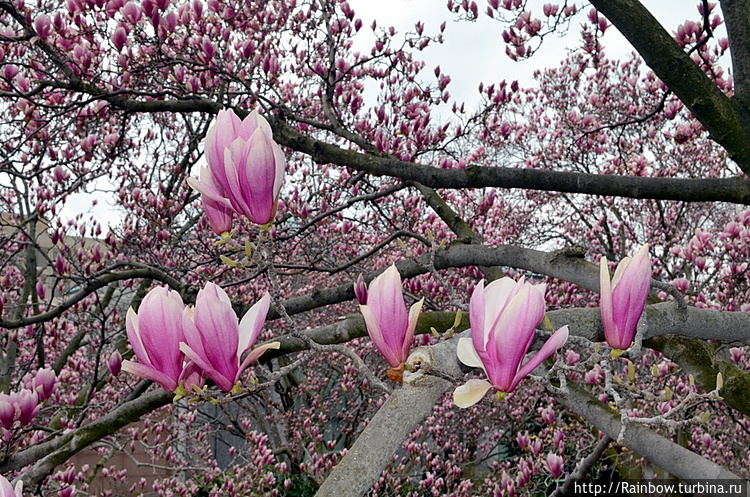 Как известно, часто самым первым цветущим весенним деревом, является магнолия. И оказалось, что весь Вашингтон заполнен цветущими магнолиями. Они были везде, возле Капитолия, а также в парках и скверах, на улицах, и во дворах у домов, скрытые взорам и появляющиеся совершенно неожиданно, и видимые издалека. Город был прикрыт весенним покрывалом розового чуда.