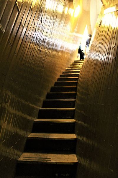 Не знаю, считает ли кто-нибудь их при подъёме. Вероятно, такие находятся. Другим же, признаюсь, не до арифметики. Лестничный коридор, ведущий наверх, находится где-то внутри между внутренней сферой купола и наружной. Отчего стенки узкого лестничного проёма имеют довольно сильный наклон. При подъёме приходится постоянно изгибаться, иногда опираясь рукой.