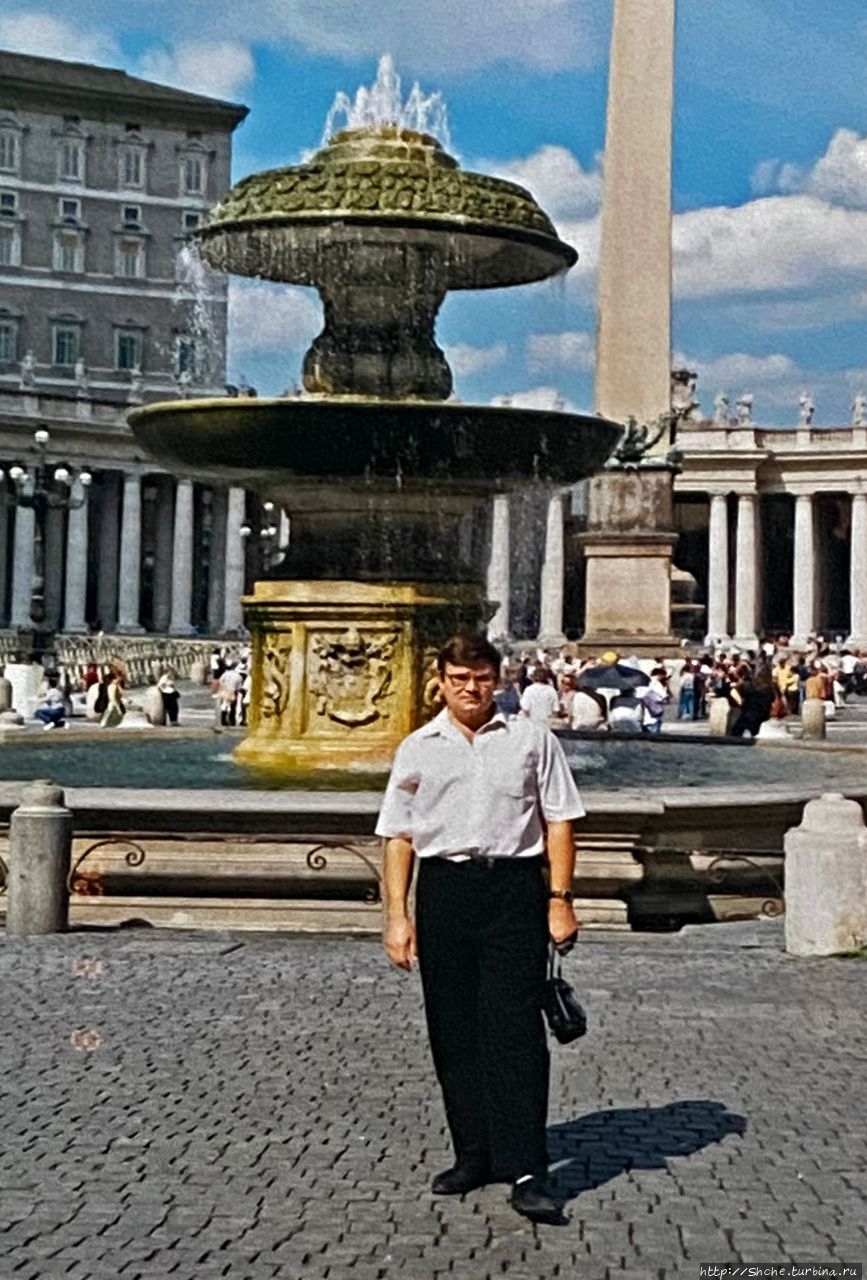 Смотрю сейчас свое фото на площади Святого Петра возле знаменитого фонтана Бернини и не верю своим глазам! Спроси меня кто, носил ли я когда-нибудь рубашку, заправленную в брюки, я бы только посмеялся в ответ. А ведь оказывается носил! жуть какая!