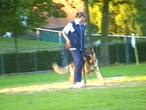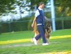 Чемпионат закончился. Начались показательные выступления бельгийских кинологических служб. Сначала они продемонстрировали обезвреживание заминированного автомобиля. Затем на поле вышли дети. Они организовали живую полосу препятствий. Проводник усадил собаку на капот автомобиля, а сам ушёл на другой конец поля. После команды «ко мне» собака прыгнула с капота и преодолела полосу препятствий, подбежав к проводнику. Он подал команду «место», и собака проделала то же самое в противоположном направлении.