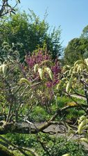 В саду растёт ещё одно интересное бобовое растение-медонос — Иудино дерево. На Пасху оно очень интенсивно и цветет ярко-розовым цветом. Естественно, о происхождении такого названия есть легенда. На таком дереве повесился Иуда Искариот. Дерево покраснело от стыда. Листики иудиного дерева маленькие и круглые, как те 30 серебрянников.