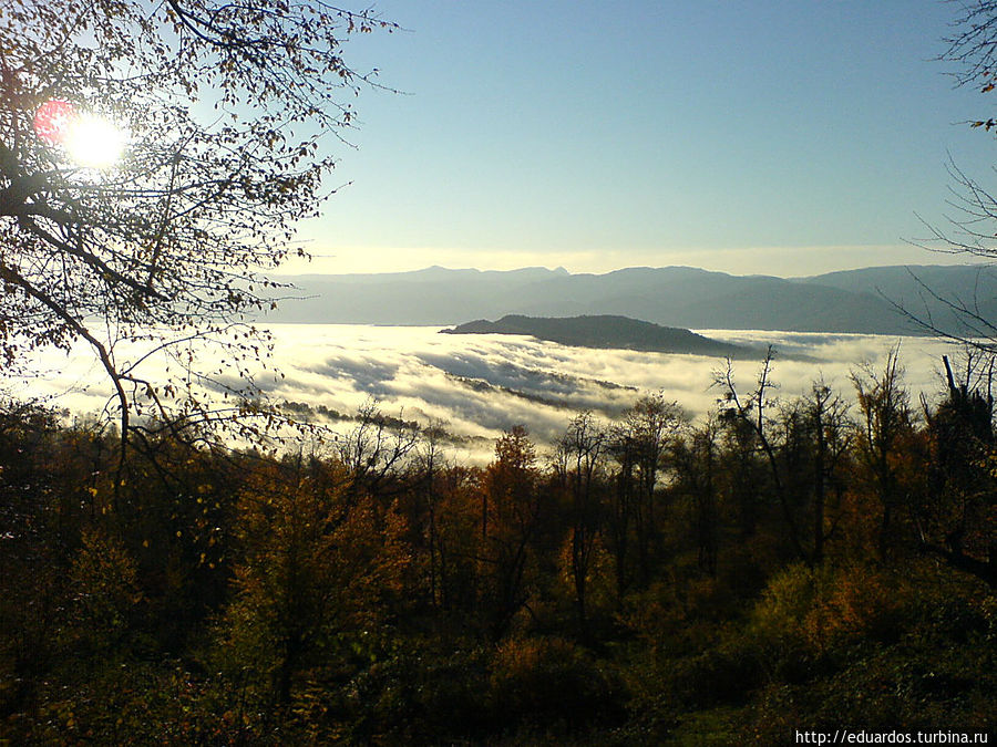 То, что Вы дальше увидите — это продукт, образованный туманами, то есть облака)))) Основная масса фотографий сделана на телефон, прошу заранее простить за качество! Но не снимать этого я не мог))) Точка съёмки — примерно 1100 м. над уровнем моря))) Жаль, что местное население не имеет возможности, способности и желания организовать туристический бизнес в этих наиволшебнейших местах. Даже и при наличии всего перечисленного в местные леса ещё очень долго нельзя будет зайти без опаски за жизнь и здоровье..... Очень жаль!!!