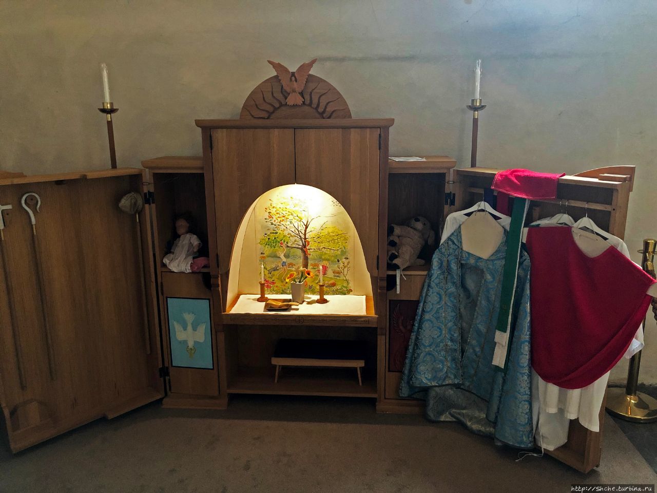 Ведь здесь нет ни традиционных икон, ни религиозных скульптур... И вот таким образом здесь решили вопрос со свечами.