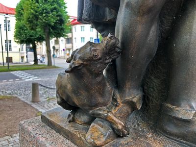 Перед собором стоит интересная скульптурная группа...