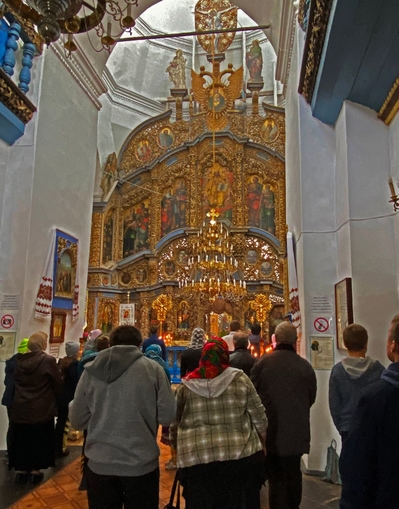 Видимо запрет на фотосъемку здесь строгий даже для приехавших на организованную экскурсию. /Я суже по тому, что в интернете, где полно снимков внешнего вида церкви, нет качественных снимков иконостаса. Я нашел всего пару снимков, которые подошли по качеству для размещения на нашем сайте...