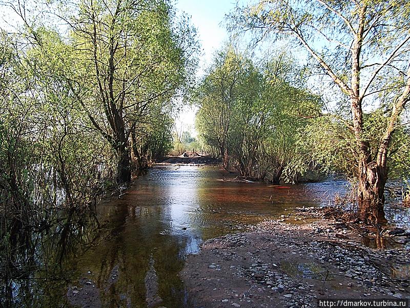 Чуть дальше по трассе — мост через Малый Волховец, ну, а там и до Новгорода недалеко. Вдоль дороги сплошная вода, все залито или заболочено.