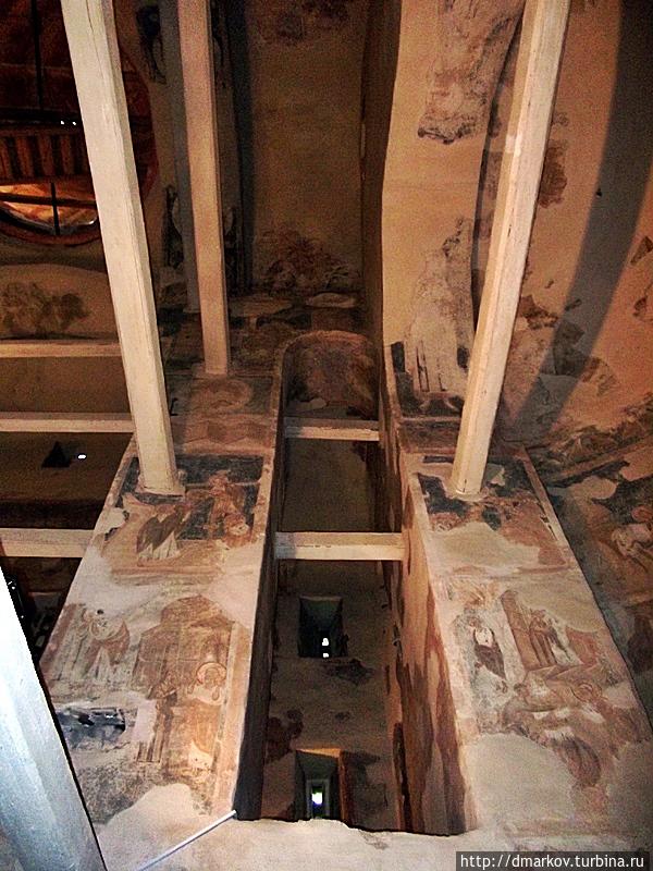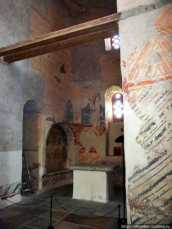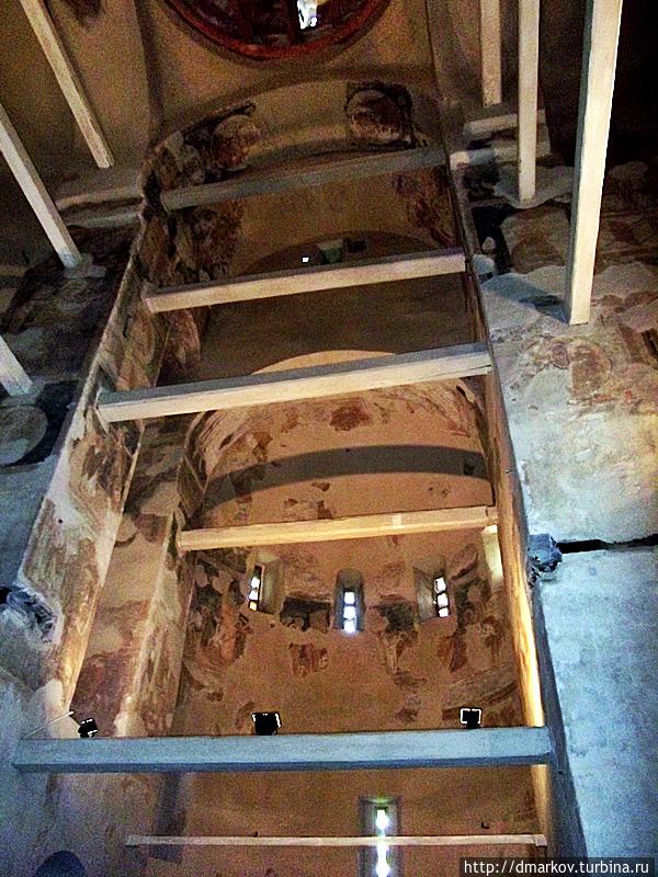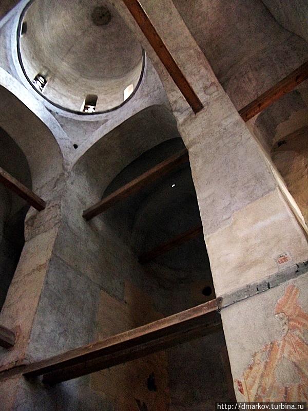 Обратно возвращался тем же путем. Вот и церковь уже открыта! Купил билет и в полном одиночестве вошел под прохладные своды. Церковь была восстановлена после войны, фрески практически не сохранились. Тем не менее гармоничной архитектурой храм привлекает внимание и сейчас.