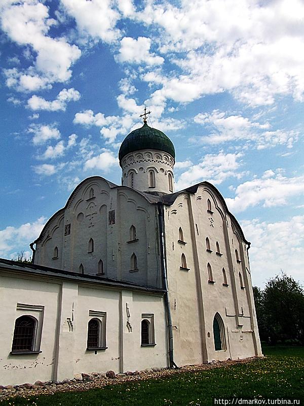 Отсюда недалеко до церкви Федора Стратилата на Ручью (9). Улица Федоровский ручей когда-то была настоящим ручьем и довольно широким, в 50-х годах XX века при постройке нового моста через Волхов ручей засыпали. Церковь Федора Стратилата славится своими фресками, которые одно время даже приписывали Феофану Греку, но потом отнесли к его школе. Уцелевшие фрески фрагментарны, но разбросаны по всей церкви. И вновь удивляет отсутствие туристов.