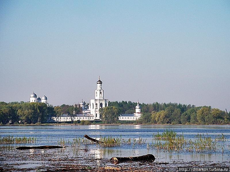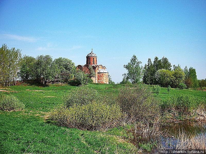 Новгород с запада оказался затоплен водой, настолько разлились реки. Малый Волховец казался огромной рекой, не меньше Волги. Пол восьмого утра, автобус едет по казалось нетронутым человеком землям. Полчаса, и я в Нередицах (официально деревня называется Спас-Нередицы). До церкви рукой подать (2). Стоит среди картофельных полей тихо и величаво (напомнила мне Покров на Нерли). Под куполом ласточки вьют свои гнезда. Открывается церковь-музей в 11 часов, самое время сходить на Городище.