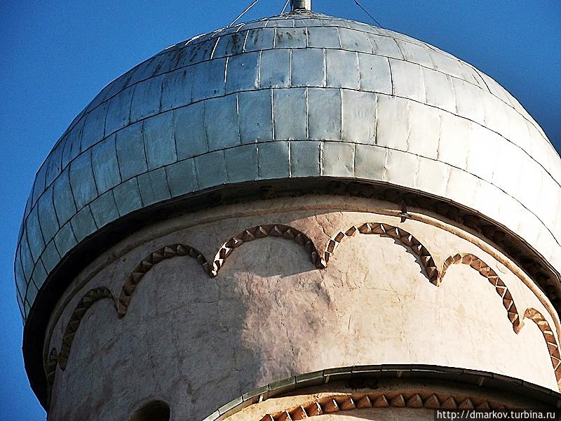Там восстановлен из послевоенных руин еще один шедевр новгородского зодчества — церковь Спаса на Ковалеве (5). Архитектура абсолютно отличается от Нередицкого храма, но это и интересно. Возле церкви собралась свадебная компания, они несколько раз обошли церковь, подливая себе шампанское. А я тем временем зашел внутрь. Тот же покой и безмятежность. Фресок нет (об этом рассказ ниже), смотрительница с горечью рассказала о постоянных свадебных обрядах (некоторые из которых заканчиваются разбиванием бутылок о стены церкви). Охраны нет, церковь стоит в чистом поле на радость вандалам. Грустно и стыдно.