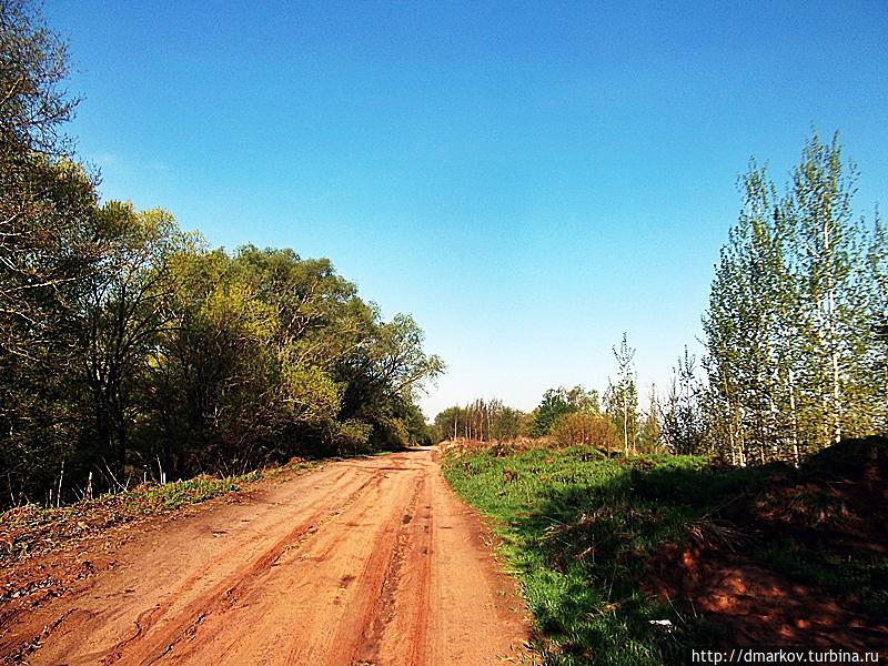 Утренний Спас на НередицеПо карте выходило, что сначала нужно выйти из деревни и пройти по грунтовой дороги вдоль насыпи.