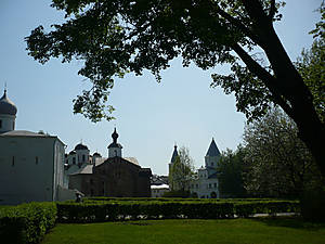 Ярославо дворище — это небольшой участок в центре города, находящийся прямо напротив кремля, на другой стороне Волхова. В древности здесь был Торг и вечевая площадь. Все концы города ставили на Ярославом дворище свои церкви, в итоге этот небольшой кусочек земли оказался плотно застроен храмами различного времени.