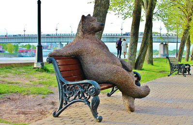 И мы там были, мёд-пиво пили, а ещё с медведем беседовали. И прощаясь с косолапым вспомнили, благодаря кому он появился в Великом Новгороде. Это местный художник и скульптор Вадим Боровых, автор другой не менее известной в городе скульптуры «Отдыхающая туристка», но это уже другая история.