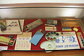Помещение представляет собой фондохранилище, где периодически организуются выставки из запасников. Во время нашего пребывания там оказалась выставка школьной формы шестидесятых годов прошлого века.