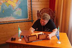 Сам по себе факт посещения Резиденции Деда Мороза летом – это уже событие достаточно не тривиальное и отдает некой хармщинкой и декадансом. Выглядит это со стороны тоже весело – человек двадцать взрослых людей от 25 до 70 лет (детей было двое – восьмилетних) гурьбой вваливаются в ворота деревянные и их встречает девочка-петрушка бальзаковского возраста с громкоговорителем и микрофоном на ухе. И, начинается веселье! Нужно пройти тропу Сказок, да всякие препятствия преодолеть, да слова собрать, а из них пословицу! Прошу заметить, мы все были абсолютно трезвые, так как день на дворе и мы с официального торжественного мероприятия.