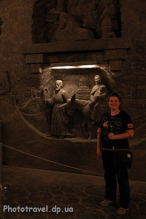 Переходим в часовню Св. Антония, которая создана в конце XVII века. Это старейшая из сохранившихся подземных часовен, куда горняки приходили на церковную службу перед началом работы (первая служба прошла в 1698 году). Часовня выдолблена в глыбе зелёной соли и содержит несколько солевых изваяний. Стоит заметить. что все скульптуры которые вы встретите сделаны из соли.