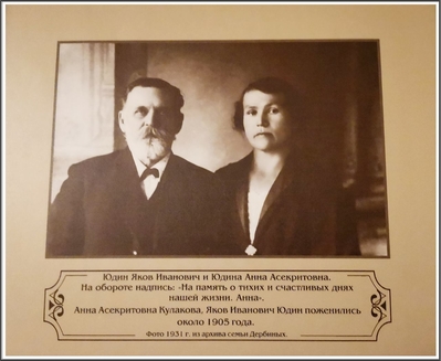 В 1905 году дом приобретает Юдина Анна Асекритовна. Это был подарок на свадьбу от её мужа Юдина Якова Ивановича.