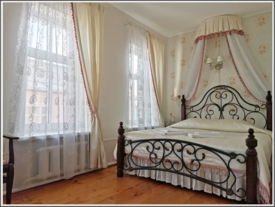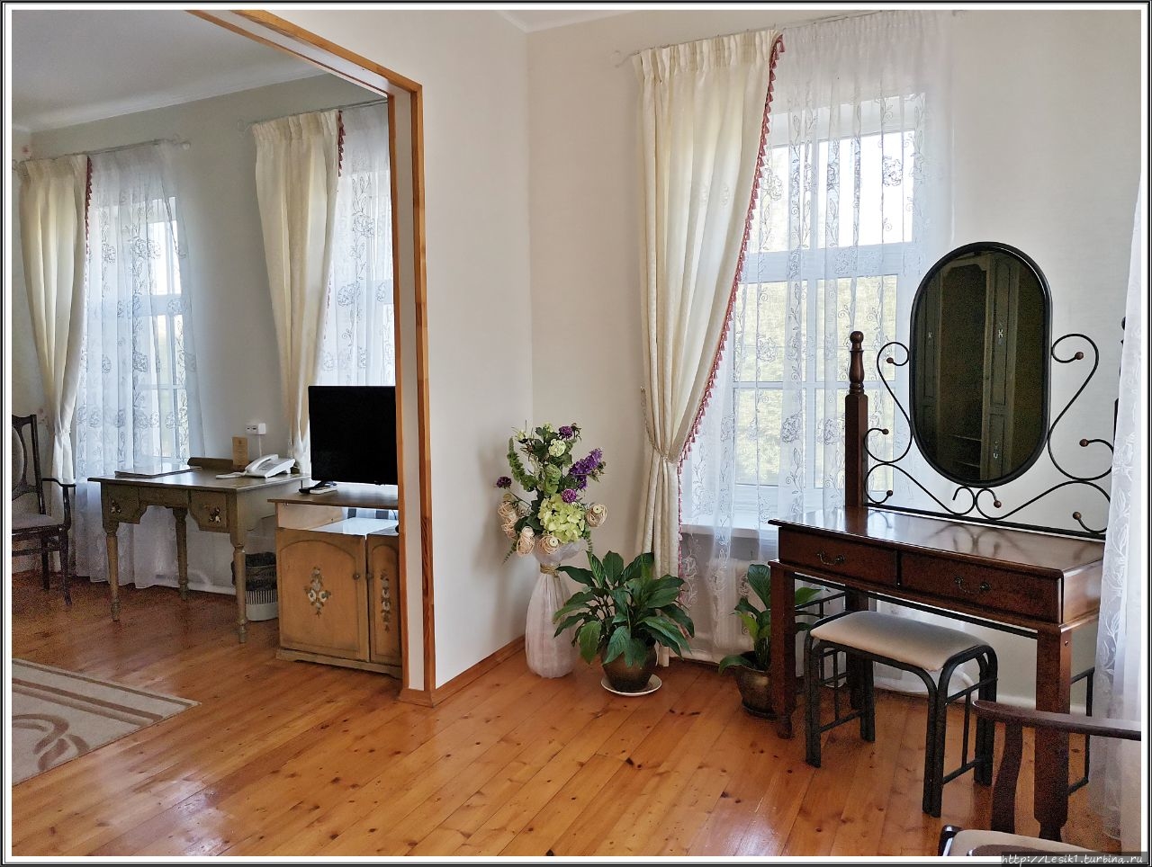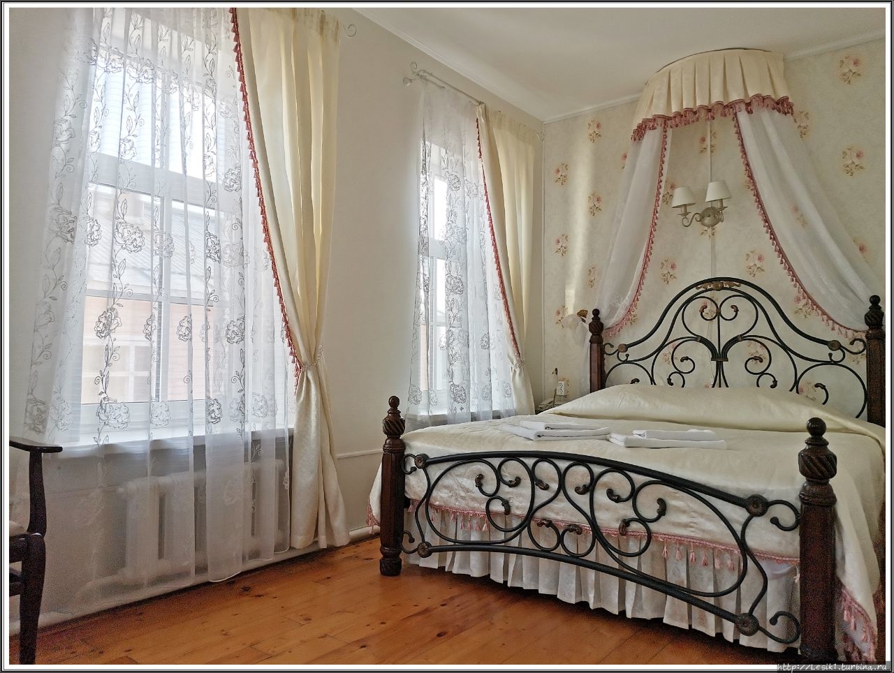 Попадаешь сюда и словно оказываешься в музее. Вот что написано на страничке отеля: «При реконструкции здания нам удалось сохранить «дух» купеческого дома, это отразилось на внутреннем убранстве гостиницы и атмосфере здания в целом. Коллекция собрана буквально по крупицам, это и посуда, и предметы интерьера, и личные вещи бывшей владелицы дома Анны Асекритовны».