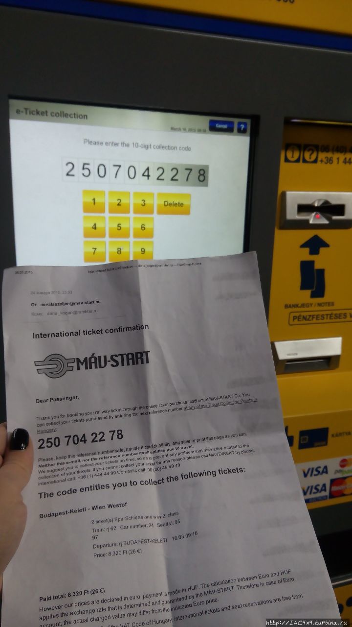 Если у Вас куплены билеты туда и обратно, обязательно распечатайте их в Будапеште, поскольку на вокзале в Вене это сделать не возможно.