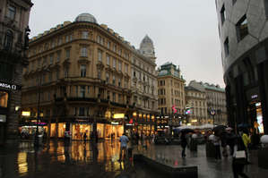 Такая вот невезуха. Я первый раз в Вене, у меня всего один вечер. Планов громадье — и посмотреть вожделенный город в вечерней иллюминации, и пошопинговать на знаменитой Кертнерштрассе. Но дождь спутал все планы. Сперва он не навязчиво брызгал по нескольку минут. А, вместе с надвигающейся темнотой, потоки воды с небес все увеличивались, началась гроза... Мы приняли решение возвращаться в отель