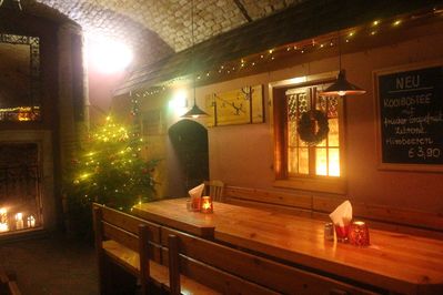 Здание, разумеется, историческое. Винодельня и виноградник тогдашнего бургомистра. Пересказывать историю не буду, тем более, что в меню на чистом русском языке все написано. Могу сказать только, что сделано все, чтобы сохранить колорит, и чтоб было понятно, где была конюшня императрицы, а где остатки Салезианского монастыря.