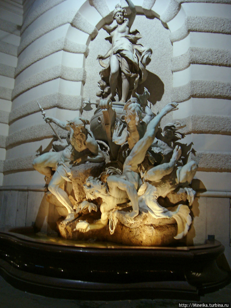 Фонтан "Die Macht zur See" («Власть на море» или «сила моря») Рудольфа Вейра, расположившийся в передней части крыла Михайловского дворца Ховбург.