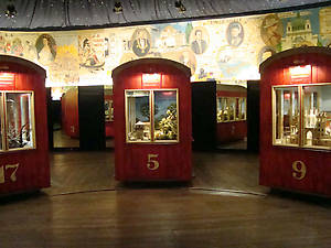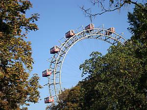 Это венское колесо обозрения, построенное более 100 лет назад, а точнее в 1897году к 50-летию правления императора Франца Йозефа I и по случаю всемирной выставки. Это колесо установлено в Wurstelprater (парке аттракционов) и имеет 15 кабинок. Эти кабинки очень напоминают вагончики какого-то старого сказочного поезда. И вот, заплатив по 9 EUR, получаем на руки билетики «Wiener Riesenrad» открывающие нам путь сначала в музей, а потом уже и на само колесо обозрения. Как я говорил, этот аттракцион имеет 15 кабинок с четными номерами. Это сделано для того, чтобы исключить 13 номер, наверное, владельцы колеса – народ суеверный. С 1987г., к 90-летию колеса, кабинка с номером 30 — стала кабинкой-люкс. В такой кабинке можно проводить праздники, дни рождения, переговоры. Атмосфера здесь солидная — стены красного дерева, гардины в стиле модерн, мраморные столики, ковер, современное освещение. А после реконструкции (первоначально колесо имело 30 кабинок) вагончики с нечетными номерами нашли свое пристанище в музее.